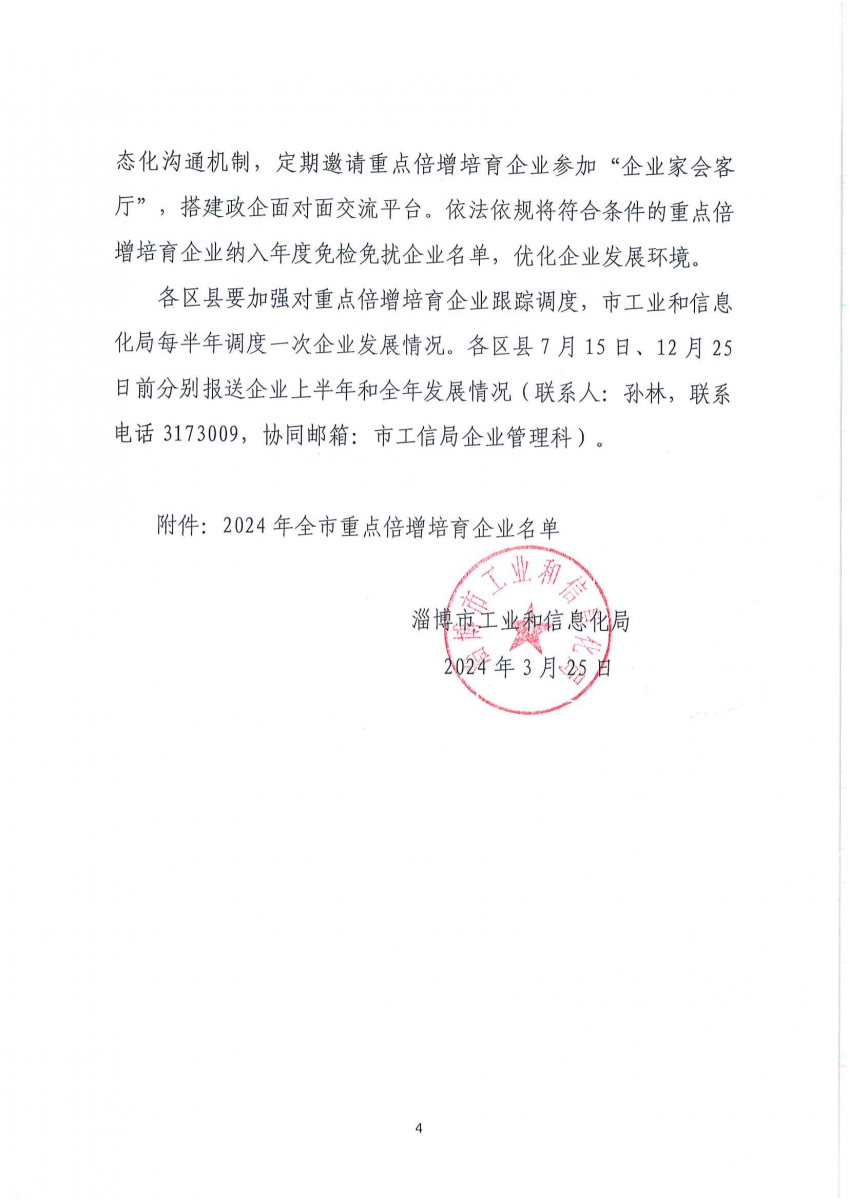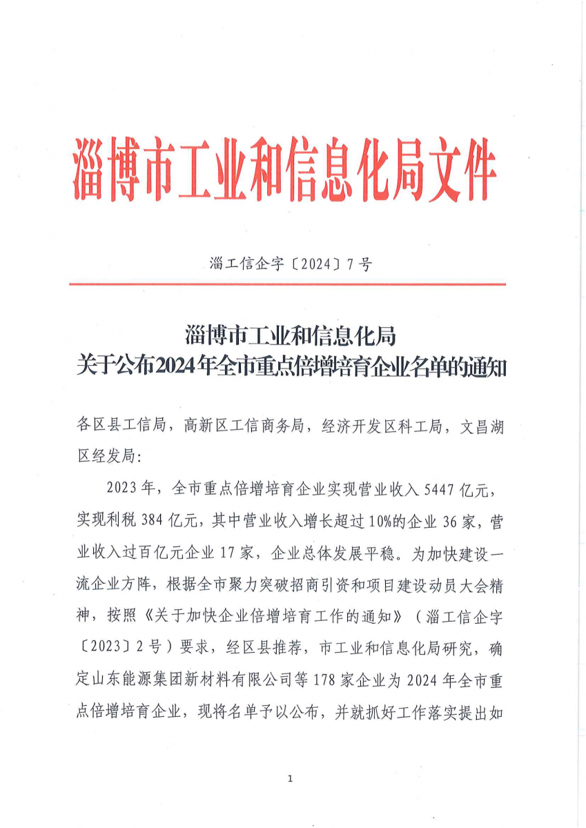 3月25日,淄博市工业和信息化局公布了2024年全市重点倍增培育企业名单,包括明胜m88官网在内的178家企业进入名单,这是公司连续第二次入选全市重点倍增培育企业名单(2023年入选名单)。